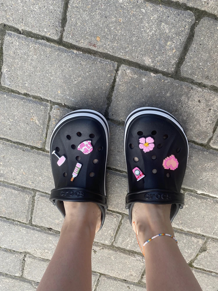 Купила черно-белые Crocs Bayaband Clog как садовые тапочки. Очень легкие и удобные, мех греет. Выглядят симпатично. Минус — подошва быстро протирается, если много ходить по асфальту. Но для дачи и дома лучший вариант